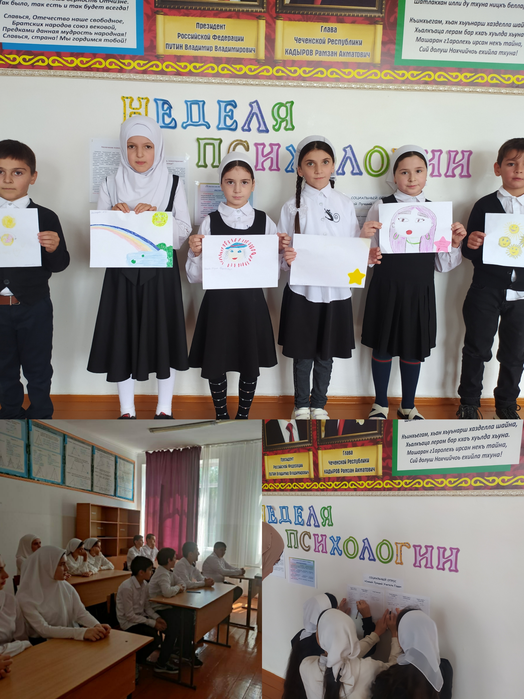 Акция «Мое настроение» - Учащиеся и педагоги украсили свои кабинеты позитивными рисунками.Социальный опрос "Самый лучший учитель года"-Среди обучающихся 1-9 классов проведен социальный опрос "Лучший учитель" по следующим номинациям: Самый строгий и требовательный; Самый добрый и заботливый; Самый творческий; Самый открытый и весёлый; Самый чуткий и внимательный.Психологические упражнения и игры "Давайте жить дружно", целью которых являлось формирование этических норм поведения в обществе и общения друг с другом, развитие эмоционально-ценностной сферы учащихся. В ходе игр дети обучались навыкам и приемам, направленным на сохранение и укрепление психологического здоровья.