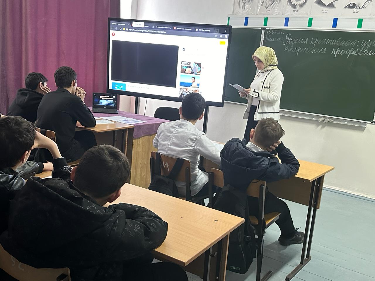 15.02.202415.02.2024г. в МБОУ «Регитинская СШ» зам. директора по ВР Дадаева М.У. провела внеурочное занятие с учащимися среднего звена 8-9 класса