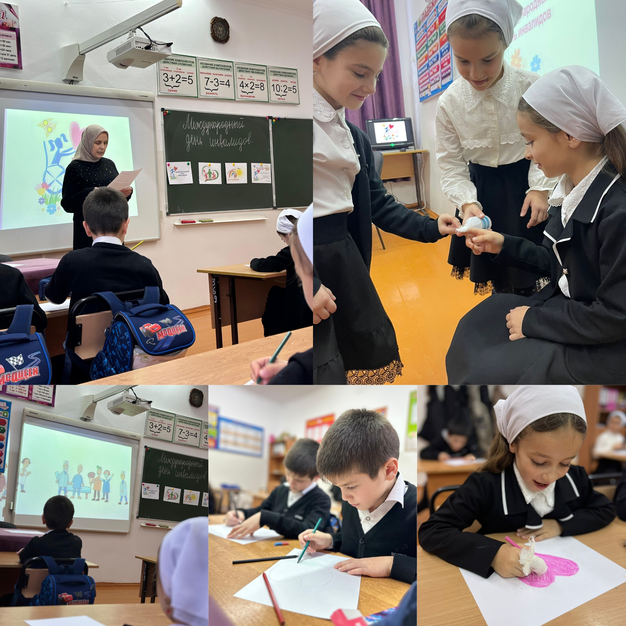 Учителя провели с детьми беседы, которые сопровождались просмотром презентаций «Мы все такие разные», «Не такие как все», «Я всегда помогу попавшим в беду», «Это трудно, это сложно, но иначе - невозможно», которые способствовали развитию чувства сострадания и нравственных качеств детей.