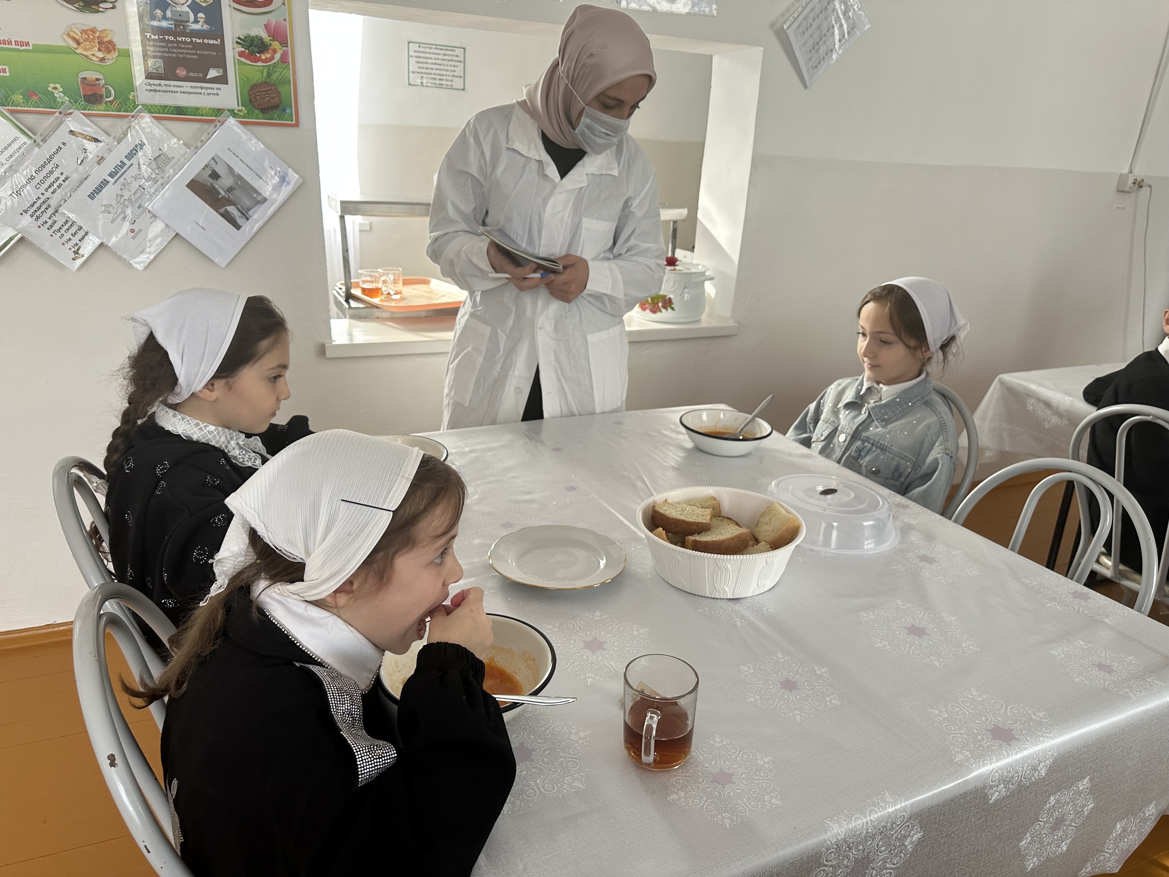 В целях усиления контроля над организацией питания в МБОУ «Регитинская СШ» комиссия в составе Цакаевой Ж.Х. зам.директора по УВР, членов бракеражной комиссии по контролю горячего питания – Хамбулатова Д. А., Дадаевой М.У. проводится проверка организации питания учащихся 1-4 классов.